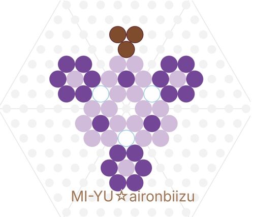 こんばんは♪ ブログをご覧いただきありがとうございますʕ•ᴥ•ʔ ドット絵でのアイロンビーズ図案のご紹介です。 アイロンビーズ図案 ぶどう 使用ビーズ 完成図 こちらの図案は、刺繍、ピクセルアート!そのほかにもビーズアートなどにもご利用頂けます☆